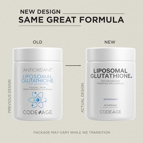 O suplemento Codeage Liposomal Glutathione 1000 mg oferece uma dose potente de 1.000 mg de glutationa reduzida por porção, fornecendo um suporte eficaz para a saúde.