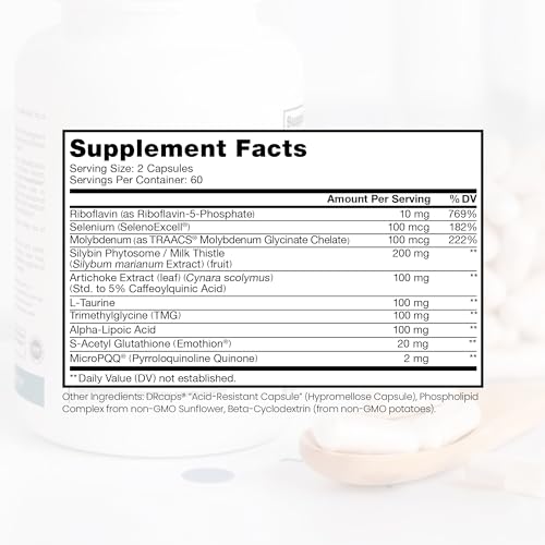 SUPORTE À DESINTOXICAÇÃO E SAÚDE HEPÁTICA: A fórmula Pure Therapro Rx Liposomal Liver Detox 120 Acid-Resistant VCaps é um suplemento avançado que oferece suporte ao fígado. Contém Extrato de Cardo Mariano Europeu 30:1 e Silimarina Padronizada a 80%, juntamente com Extrato de Alcachofra, Taurina, Ácido Alfa-Lipóico e Glutationa Acetilada Patenteada (Emothion) – todos desempenhando um papel significativo na limpeza e suporte à saúde hepática e desintoxicação.