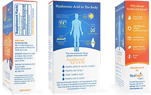 O Hyalogic Liquid Synthovial Seven é um suplemento oral de ácido hialurônico que oferece uma hidratação profunda para a pele, corpo e lábios. Este pacote inclui uma garrafa de 1oz do suplemento líquido Synthovial 7 e um tubo de bálsamo labial HA.