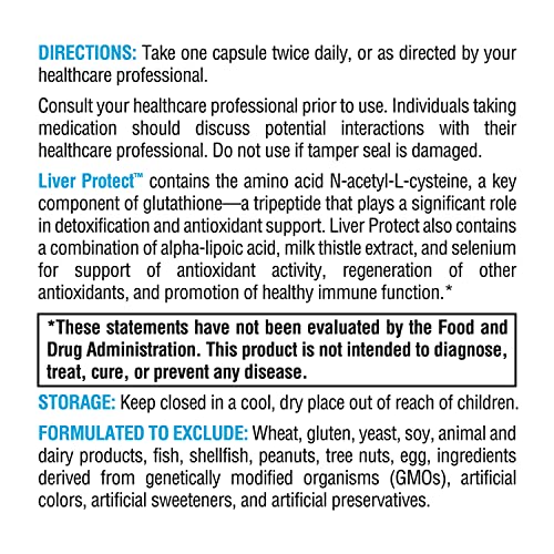O Liver Protect também contém uma combinação de ácido alfa-lipóico, cardo mariano e selênio 100 mcg para suporte da atividade antioxidante, regeneração de outros antioxidantes e suporte imunológico.*