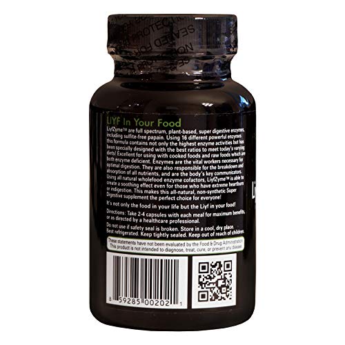 LiyfZyme é um suplemento digestivo à base de enzimas vegetais de espectro completo, incluindo papaína livre de sulfito. Composto por 16 enzimas poderosas, esta fórmula contém apenas as mais altas atividades enzimáticas, sendo ideal para dietas variadas. É excelente para ser utilizado tanto com alimentos cozidos quanto crus, que são deficientes em enzimas. Além disso, possui um efeito calmante, mesmo para aqueles que sofrem de azia ou indigestão extrema. Este suplemento digestivo super natural e não sintético é perfeito para todos.