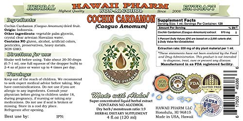 Nós produzimos este extrato líquido de Cochin Cardamon usando APENAS ingredientes naturais! Este extrato não contém álcool, OGM, glúten, corantes artificiais, metais pesados, conservantes, pesticidas ou fertilizantes!