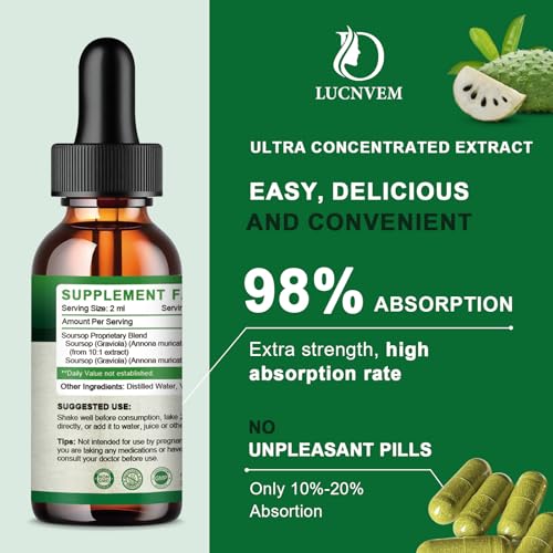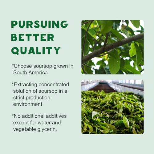Fácil de absorver e consumir: Comparado ao chá de folhas de soursop e cápsulas de extrato de soursop, nossas gotas líquidas de soursop são convenientes para consumir, deliciosas, não precisam ser embebidas em água quente ou engolidas em cápsulas desagradáveis, e podem ser adicionadas a outros alimentos.