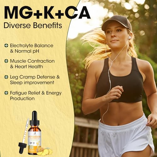 Potassium Magnesium Supplement Liquid,Potassium Aspartate 100mg with Magnesium Complex 1500mg, Calcium,Vitamin D3,Zinc,Sugar Free