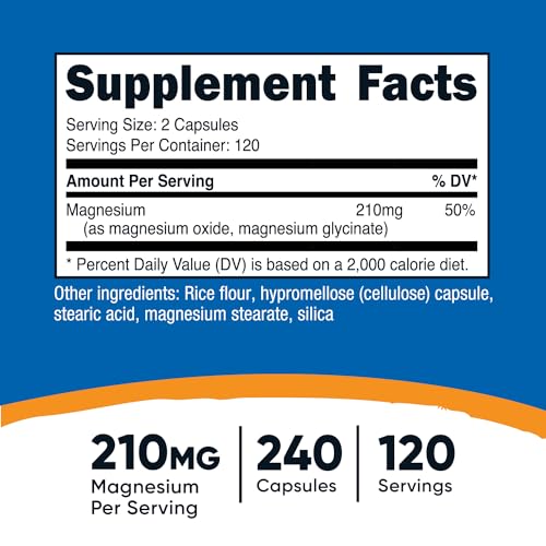 Cada frasco contém 240 cápsulas, oferecendo um suprimento amplo de 120 porções. Com 210 miligramas de complexo de magnésio por porção, você obtém o equilíbrio certo para apoiar as necessidades do seu corpo.