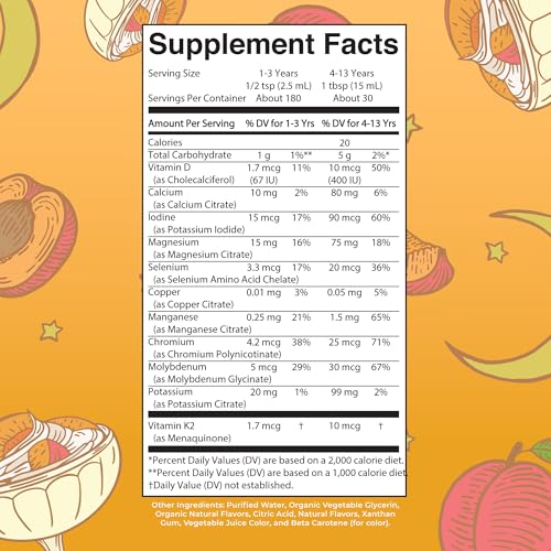 Este suplemento líquido é fácil de tomar, especialmente para crianças que têm dificuldade em engolir comprimidos. O sabor de pêssego e creme torna a experiência agradável e agradável para as crianças.