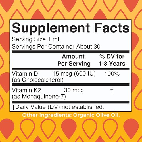 Vitamina D3 | Vitamina K2 | Gotas de Vitamina D3 K2 | Suplemento Líquido de Vitamina K2 D3 para Crianças | Suplemento para Cálcio e Fortalecimento Ósseo | Vegano | Não-OGM | Sem Glúten
