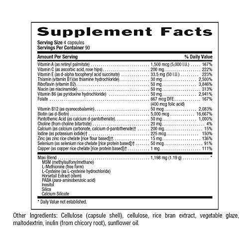 4. Certificação confiável: O Country Life Maxi-Hair Plus 5000 mcg Biotin é certificado pela GFCO.org, garantindo que seja livre de glúten e adequado para pessoas com restrições alimentares. Além disso, também é certificado pela American Vegetarian Association (AVA), sendo adequado para vegetarianos.