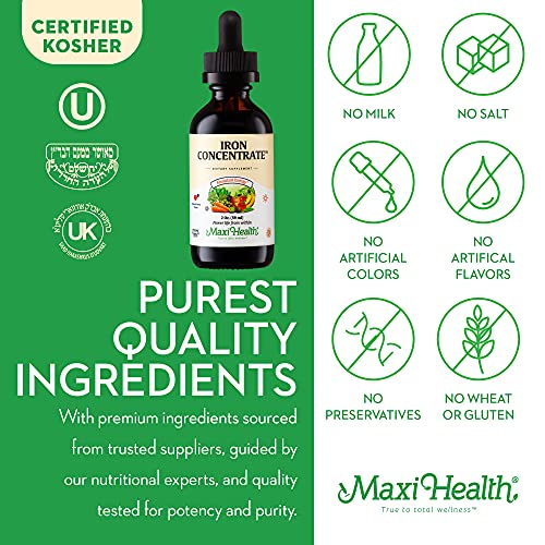 Ingredientes kosher e vegetarianos – A Maxi se dedica a formular os melhores suplementos de ferro para anemia com ingredientes de qualidade pura e natural. Não contém parabenos, soja, trigo, sal, glúten, leite, sabores artificiais, corantes ou conservantes. Certificado Kosher pela OU/UK.