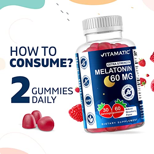 Para obter os melhores resultados, tome uma goma de melatonina Vitamatic Sugar Free Melatonin 60mg cerca de 30 minutos antes de dormir. Mastigue completamente antes de engolir. Não exceda a dose recomendada, a menos que indicado por um profissional de saúde. Armazene em local fresco e seco, longe da luz solar direta.
