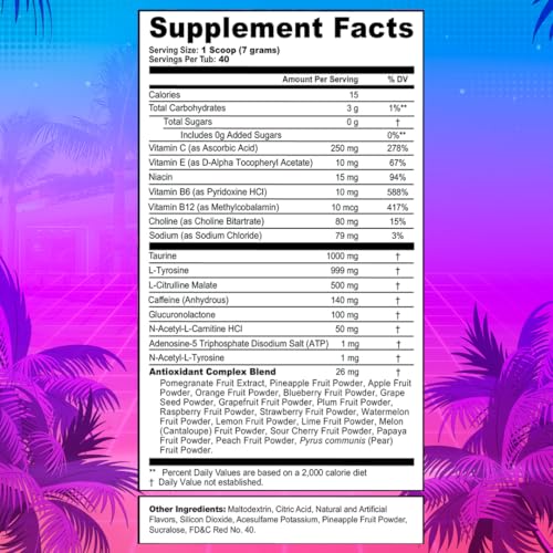 O G Fuel Miami Nights também é rico em antioxidantes, que trabalham em conjunto com nosso complexo vitamínico para promover a produção saudável de células. A quantidade ideal de antioxidantes é cuidadosamente equilibrada para garantir benefícios máximos.