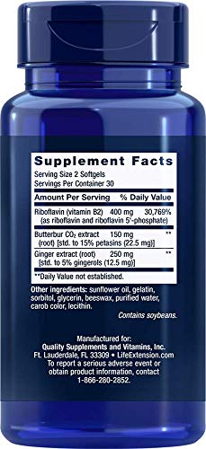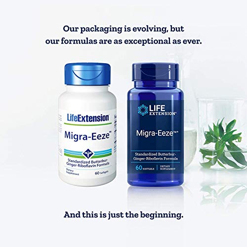 O Life Extension Migra-EezeTM Standardized Butterbur-Ginger-Riboflavin Formula, 60 Count (Pack of 2) é um suplemento alimentar de alta qualidade que oferece uma fórmula exclusiva para ajudar a aliviar os sintomas de enxaqueca. Cada embalagem contém 60 cápsulas macias, com uma dose recomendada de 2 cápsulas por dia, o que proporciona 30 porções por embalagem.
