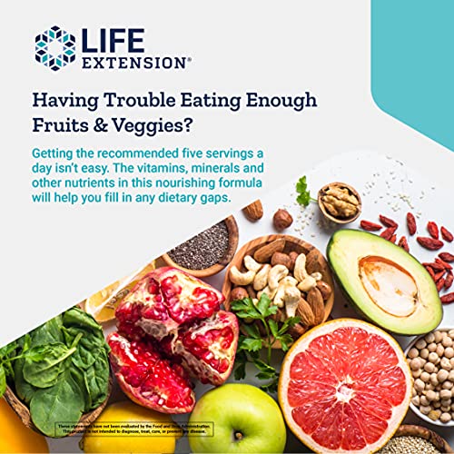 OBTENHA SUAS FRUTAS E LEGUMES – Estudos mostram que pessoas que consomem a maior quantidade de frutas e vegetais desfrutam de uma vida longa e saudável. Mas e se consumir as 5 porções diárias recomendadas não estiver no cardápio? Cada dose diária do Life Extension Mix oferece uma ampla variedade de nutrientes, incluindo extratos padronizados de frutas e vegetais.
