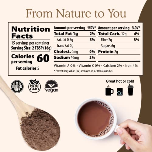 Mistura Deliciosa de Chocolate Quente com Cogumelos: Desfrute dos ricos perfis de sabor do cacau em pó orgânico, açúcar de coco orgânico e baunilha orgânica em cada xícara deliciosa e reconfortante de nossa mistura vegana de chocolate quente. Não se preocupe com o sabor dos cogumelos e experimente um sabor profundo de chocolate cacau quando consumido puro com água, leite ou misturado com seu pó de café preferido.