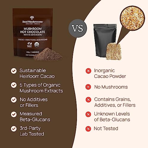 Valor Além do Produto: A Real Mushrooms não se orgulha apenas de criar suplementos de cogumelos de qualidade para rivalizar com aqueles que usam enchimentos e conservantes adicionados. Ao lado de nossos 40 anos de experiência em suplementos de cogumelos, vêm anos de valorização das necessidades de nossos clientes. Se você não estiver satisfeito com sua compra de chocolate quente orgânico, basta entrar em contato conosco para que possamos melhorar sua experiência sem fazer perguntas.