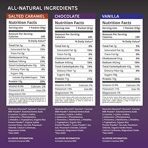 – Sugestão de Uso: Para obter os melhores resultados, misture 1 porção do mix de recuperação com 16 oz. de água dentro de 30 minutos após o exercício. Se o seu treino durou por um período prolongado, tome uma segunda porção 30 minutos depois. Este produto é recomendado apenas para adultos saudáveis. Consulte um médico antes de usar se estiver grávida, amamentando, tiver algum problema de saúde ou estiver tomando medicamentos.