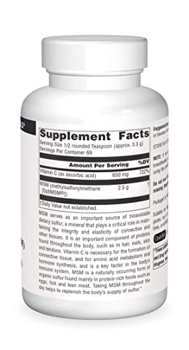 O Source Naturals MSM (Methylsulfonylmethane) com Vitamina C é um suplemento em pó que serve como uma importante fonte de enxofre dietético biodisponível, um mineral que desempenha um papel crítico na manutenção da integridade e elasticidade dos tecidos conectivos e outros tecidos. É um componente importante de proteínas encontradas em todo o corpo, como cabelo, unhas, pele e tendões.