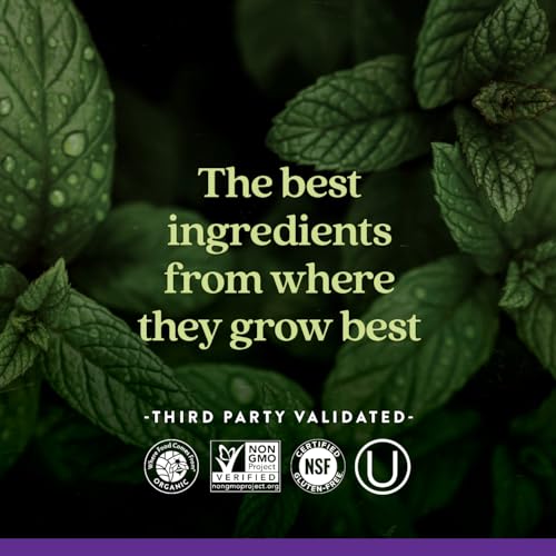Este produto é feito com vegetais e ervas certificados como orgânicos, é verificado pelo Projeto Non-GMO, 100% vegetariano, certificado kosher e livre de glúten pela NSF. Além disso, não contém enchimentos sintéticos e é livre de ferro. A embalagem pode variar, mas a qualidade e eficácia do produto permanecem inalteradas.