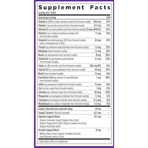 Além disso, esses multivitamínicos são feitos com vegetais e ervas certificados como orgânicos, são verificados pelo Projeto Non-GMO, 100% vegetarianos, certificados como kosher, livres de glúten pela NSF e não contêm enchimentos sintéticos ou ferro. A embalagem pode variar.