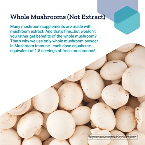 Diferentemente de muitos suplementos de cogumelos disponíveis no mercado, o Mushroom Immune utiliza apenas pó de cogumelo integral, em vez de extrato de cogumelo. Cada dose deste produto equivale a 1,5 porções de cogumelos frescos, garantindo que você obtenha todos os benefícios do cogumelo em sua forma mais natural.