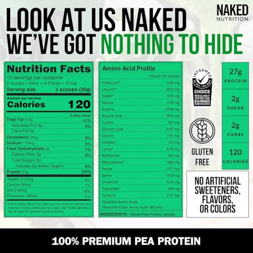 Cada porção de Naked Pea fornece 27g de proteína, 2g de açúcar, 2g de carboidratos e 5,7g de BCAAs. Essa combinação de nutrientes essenciais ajuda a promover o crescimento muscular e a recuperação pós-treino.