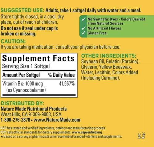 A Nature Made é uma marca reconhecida por sua qualidade e compromisso com a saúde. Suas cápsulas de Vitamina B12 são fáceis de engolir e possuem uma fórmula de rápida absorção, garantindo que o corpo aproveite ao máximo os benefícios desse importante nutriente.