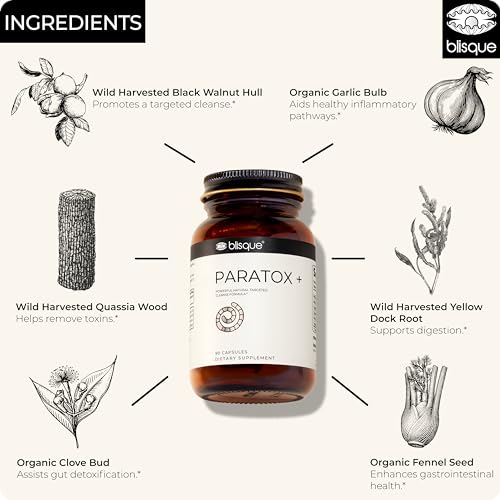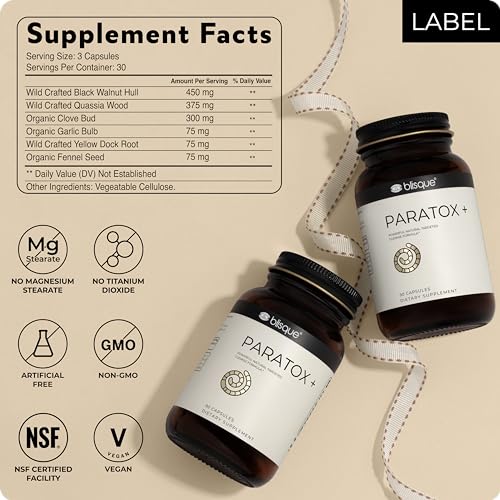 Blisque – Natural para Targeted Cleanse Support Supplement | Doctor Approved | with Quassia Wood and Black Walnut Hulls | Vegan and Non-GMO | 90 Capsules
