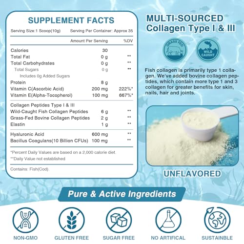 O Marine Collagen Peptides Powder – Type I da Nature Target é um suplemento alimentar de colágeno marinho de alta qualidade, rico em colágeno dos tipos I e III. Este produto é perfeito para qualquer estilo de vida ou dieta, incluindo Keto, Paleo e Vegan. Sua fórmula exclusiva de triplo colágeno combina peptídeos de colágeno marinho provenientes de peixes capturados na natureza e colágeno bovino proveniente de animais alimentados com capim.