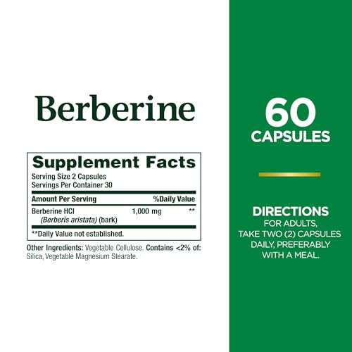 EASY AND CONVENIENT CAPSULES: With Nature’s Bounty Berberine, taking care of your heart health has never been easier. Just two capsules daily deliver 1000mg of Berberine from the Berberis aristata plant. Each bottle provides a full month’s supply, ensuring you have enough to support your cardiovascular health goals (1).