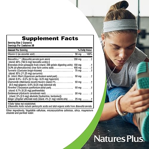 Conheça o NaturesPlus Herbal Actives InflamActin – 60 Cápsulas Vegetarianas – Suplemento Herbal com Cúrcuma. Este poderoso suplemento contém uma combinação de ervas ayurvédicas, como boswellia, cúrcuma, camomila, tanaceto e hidraste. Além disso, é enriquecido com vitamina C, DLPA, bromelina, erva de São João e gengibre.