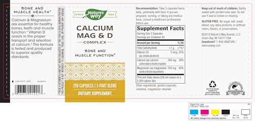 Conheça o Nature’s Way Calcium-Magnesium-Vitamin D3 – Bone Health, um suplemento que oferece suporte à saúde óssea e função muscular. Com uma fórmula cuidadosamente desenvolvida, este produto contém cálcio e magnésio, minerais essenciais para ossos, dentes e função muscular saudáveis. Além disso, a vitamina D auxilia no transporte adequado e retenção de cálcio no organismo. Para obter os benefícios deste suplemento, é recomendado que adultos tomem 3 cápsulas duas vezes ao dia, preferencialmente com alimentos.