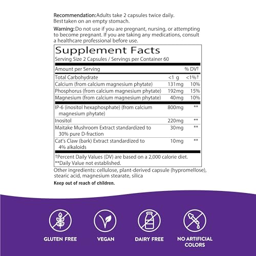 2. Atividade das células natural killer: A combinação de IP-6 e inositol presente neste suplemento estimula a atividade das células natural killer, que são responsáveis por identificar e destruir células infectadas ou cancerígenas no organismo.