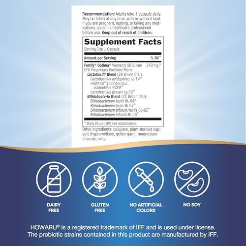 Conheça o Nature’s Way Fortify Optima Daily Probiotic for Women, um suplemento diário probiótico formulado com cepas pesquisadas para apoiar a saúde digestiva, imunológica e feminina. Com 7 cepas probióticas para promover a diversidade intestinal e 50 bilhões de cepas probióticas vivas por cápsula, este produto é ideal para fortalecer sua saúde.* Além disso, este probiótico contém mais cepas de Lactobacillus para apoiar a saúde das mulheres e Bifidobacterium para promover a saúde do cólon.* As cápsulas vegetarianas de liberação retardada são resistentes aos efeitos prejudiciais do ácido estomacal e distribuem as culturas vivas para a área adequada do intestino delgado e cólon. Não é necessário refrigerar, mas pode ser refrigerado, se preferir. Este suplemento é livre de glúten e laticínios, sem corantes artificiais.