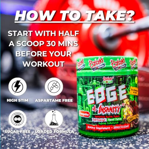 O Psycho Pharma New Perfect Powders with Zengaba Energy Feel Good Focus Edge of Insanity é o pré-treino mais forte do mercado, não recomendado para iniciantes. Com uma fórmula poderosa e exclusiva, este pó de treino proporciona uma explosão de energia, foco e força para os treinos mais intensos.