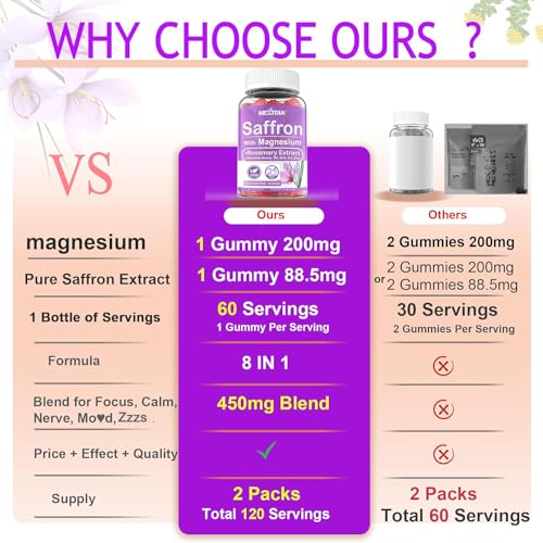 4. Reduz o apetite, coma menos: O açafrão apoia uma alimentação saudável e um bom humor. Evite a ingestão excessiva de calorias devido a um mau humor. Combinado com exercícios, você finalmente vencerá a batalha contra a gordura teimosa. As gomas de açafrão contêm extratos de Rhodiola e alecrim para apoiar sinergicamente antioxidantes e muito mais. As gomas são com sabor de framboesa, orgânicas e veganas. As deliciosas gomas são a alternativa perfeita para outros suplementos de açafrão, como cápsulas, comprimidos e pó de açafrão.