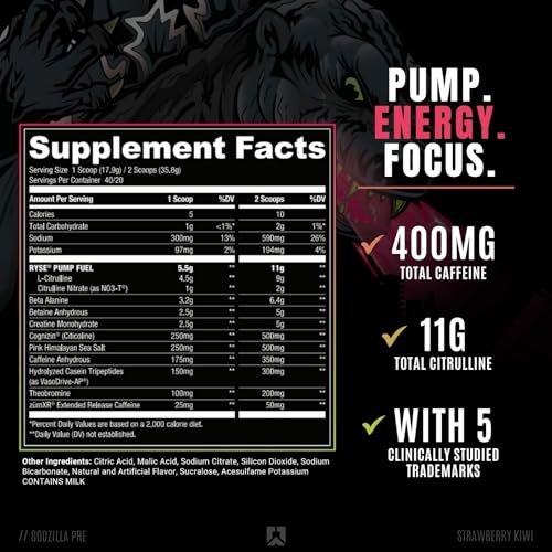 ✔️ UNLEASH YOUR INNER BEAST: Só pode haver UM Rei e o Rei dos pré-treinos chegou. O Noel Deyzel X Godzilla Pre-Workout, oficialmente licenciado, é um verdadeiro monstro. Com uma porção gigantesca de 40g, esse gigante proporciona bombas musculares avassaladoras, foco afiado como uma navalha e energia explosiva de longa duração. Carregado com 12 ingredientes, 5 marcas registradas estudadas clinicamente e um sabor delicioso, seu novo pré-treino favorito está pronto para a batalha.