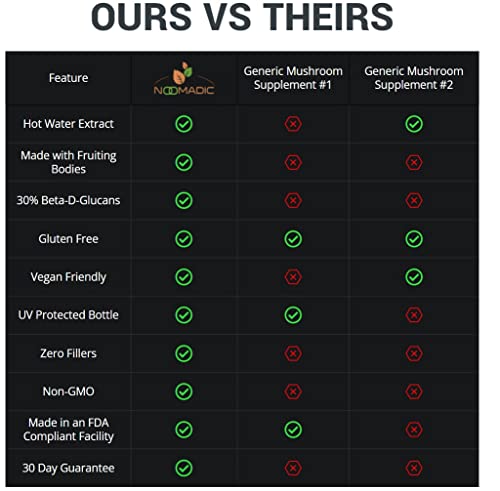 5. Garantia de satisfação: A Noomadic oferece uma garantia de reembolso de 100%, para que você possa experimentar o Chaga Mushroom sem riscos.