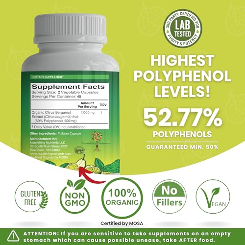 Organic Citrus Bergamot- Only USDA Certified -Highest 50% Polyphenols- Vegan 90 caps- 3rd Party tested-USA made supplement – Heart – Cholesterol