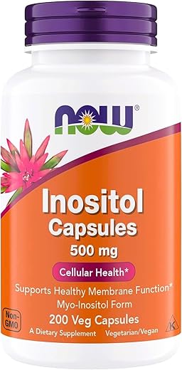 Now Foods Inositol 500 mg, Superior Myo Inositol Form, for Healthy Membrane Function*, Cellular Health*, Support for Women* Kosher, Suitable for Vegans – 200 Vegetarian Capsules
