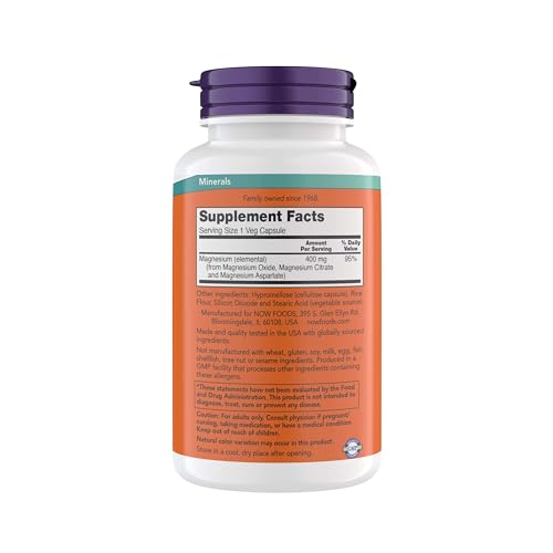 Recomenda-se tomar 2 cápsulas de magnésio NOW Supplements Magnesium 400 mg por dia, de preferência com alimentos. Consulte um profissional de saúde antes de iniciar qualquer suplementação.