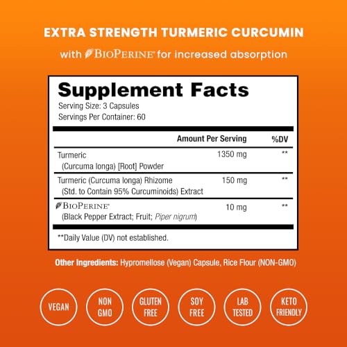 Highest Potency Available – The most potent and pure turmeric powder with 95% curcuminoids. Our premium blend includes the patented black pepper extract BioPerine for maximum absorption & benefits.