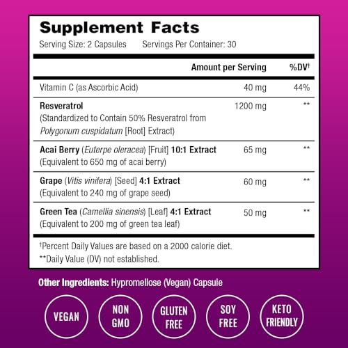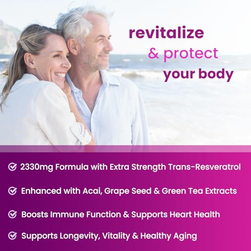 Suplemento de Resveratrol | Fórmula de Força Extra para Envelhecimento Saudável e Suporte Imunológico