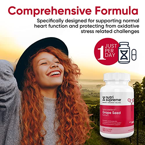 As cápsulas de extrato de semente de uva Nutri Supreme Grapeseed Extract Leucoselect fornecem um suporte antioxidante poderoso, ajudando a neutralizar os radicais livres prejudiciais e promover o bem-estar geral.