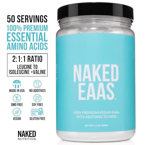 NAKED nutrition Eaas Amino Acids Powder – 50 Servings – Vegan Unflavored Essential Amino Acids 500 Grams – Instantized All Natural Eaa Powder Supplement