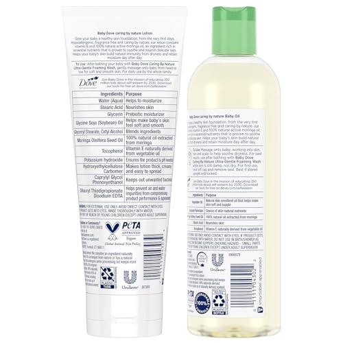 O Óleo de Bebê Dove é um produto especialmente desenvolvido para atender às necessidades da pele delicada dos bebês. Este pacote inclui um óleo de bebê e uma loção de bebê que são sensíveis às necessidades da pele delicada.