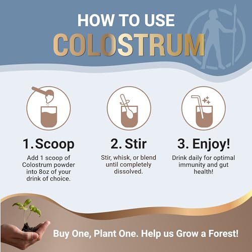 Fácil de Adicionar à Sua Rotina Diária: Tornamos o consumo dos alimentos mais densos em nutrientes do planeta fácil e conveniente. Nosso pó de colostro é incrivelmente versátil e fácil de usar. Basta adicionar uma colher a uma xícara de água ou à sua bebida de escolha. Agite, mexa ou misture e aproveite!