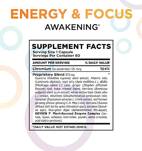 Desperte sua energia natural com as pílulas Awakening Natural Energy. Essas pílulas contêm uma mistura aprimorada de ingredientes nootrópicos naturais, incluindo Ginseng Vermelho Coreano, Extrato de Guaraná, Picolinato de Cromo, Alga Atlântica, Raiz de Gengibre, minerais e enzimas ativas de origem vegetal.