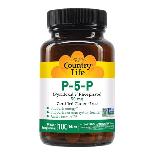 Country Life P-5-P Vitamin B6 – Suplemento de Piridoxal-5-Fosfato Bioativo para Energia, Suporte ao Sistema Nervoso e Crescimento de Células Vermelhas do Sangue – Certificado Livre de Glúten, Vegano,…
