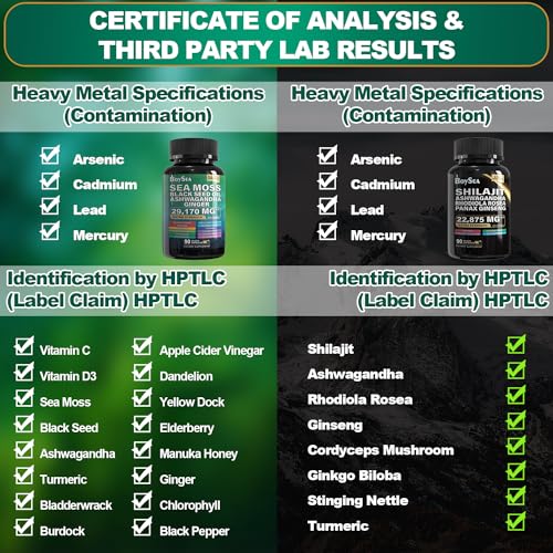 O Shilajit e o Sea Moss da Boysea, cada um em sua própria embalagem, fornecem uma fórmula abrangente de 8 em 1 e tudo em 1, respectivamente. Este conjunto oferece uma ampla variedade de nutrientes, proporcionando uma solução completa e conveniente para o bem-estar.