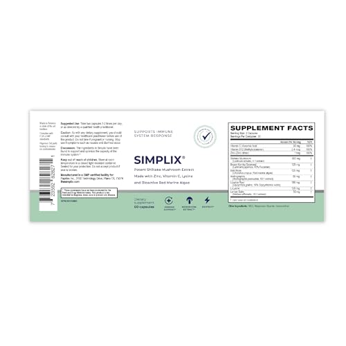 Cada frasco de Simplix contém 60 cápsulas, proporcionando um suprimento adequado para o uso diário. Com o Simplix, você pode otimizar sua imunidade natural e substituir nutrientes essenciais para ajudar seu corpo a responder a surtos virais, como o HSV e as aftas. Invista na sua saúde e fortaleça seu sistema imunológico com Simplix.